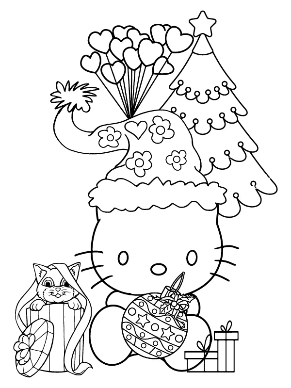 : Download Printable Feliz Olá Kitty Natal Coloring Page