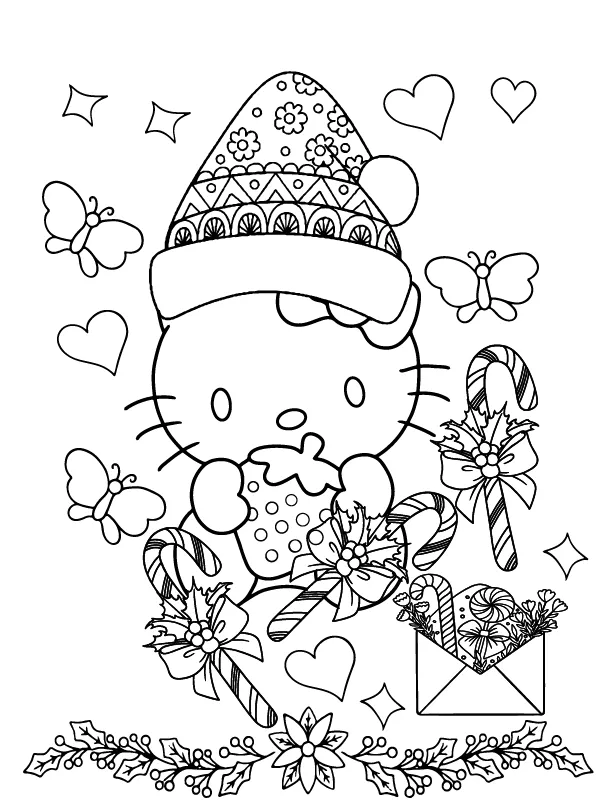 Coloração Grátis Adorável Hello Kitty Natal