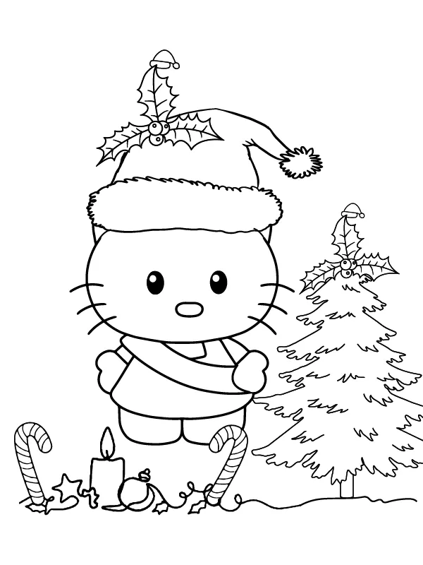 : Download Printable Maravilhoso Natal da Hello Kitty Coloring Page