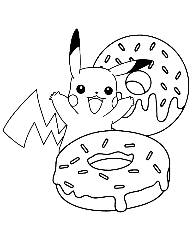 : Download Printable Pikachu Pokémon fofo com rosquinhas Coloring Page