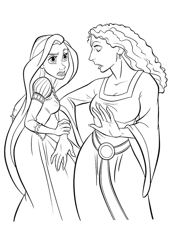 : Download Printable Rapunzel irritada com bruxa Coloring Page