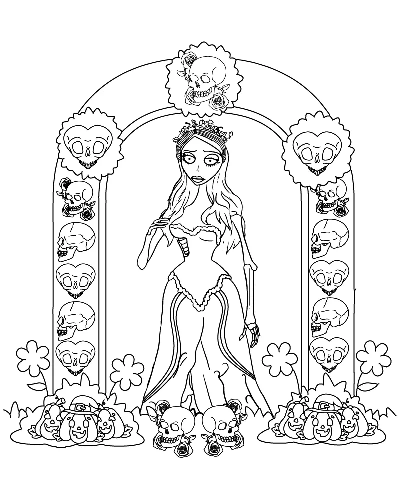 : Download Printable Menina Noiva Zumbi Coloring Page