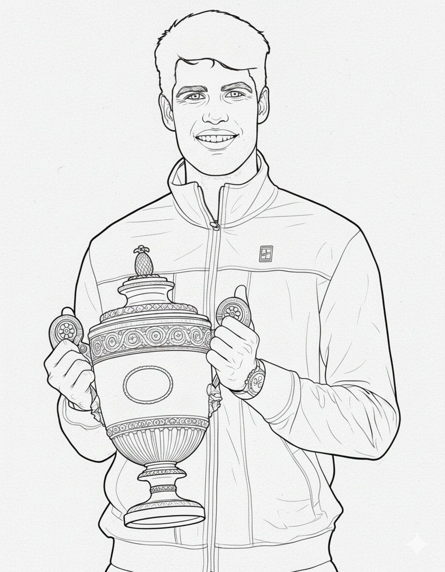 : Download Printable Carlos Alcaraz with Trophy Coloring Page Coloring Page
