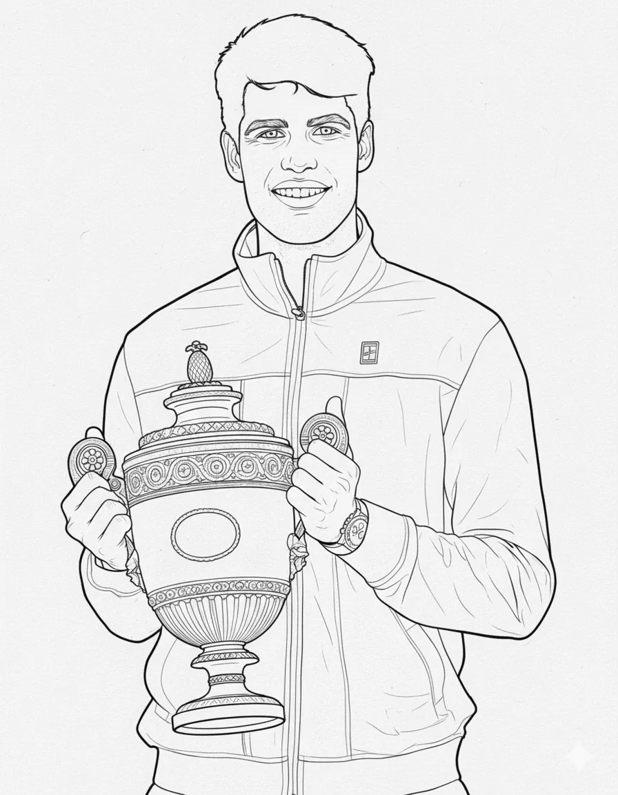 Carlos Alcaraz with Trophy Coloring Page