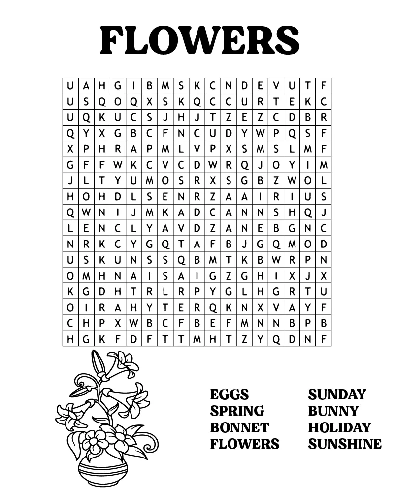 : Download Printable Páscoa Caça-Palavras Flores Coloring Page