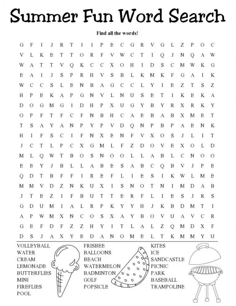 : Download Printable Caça-palavras divertido de verão Coloring Page
