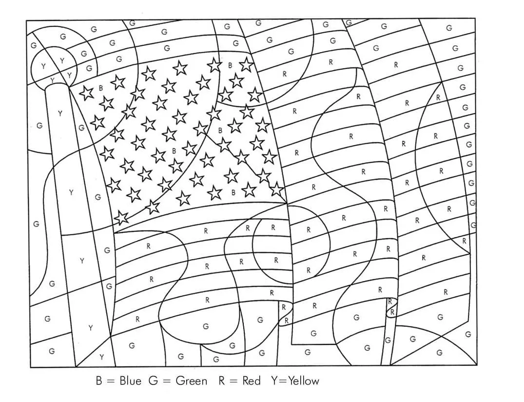 : Download Printable Cor da bandeira americana por letras Coloring Page