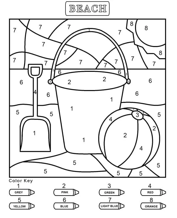 Coloring description : Download Printable Praia para jardim de infância Colorir por número Coloring Page