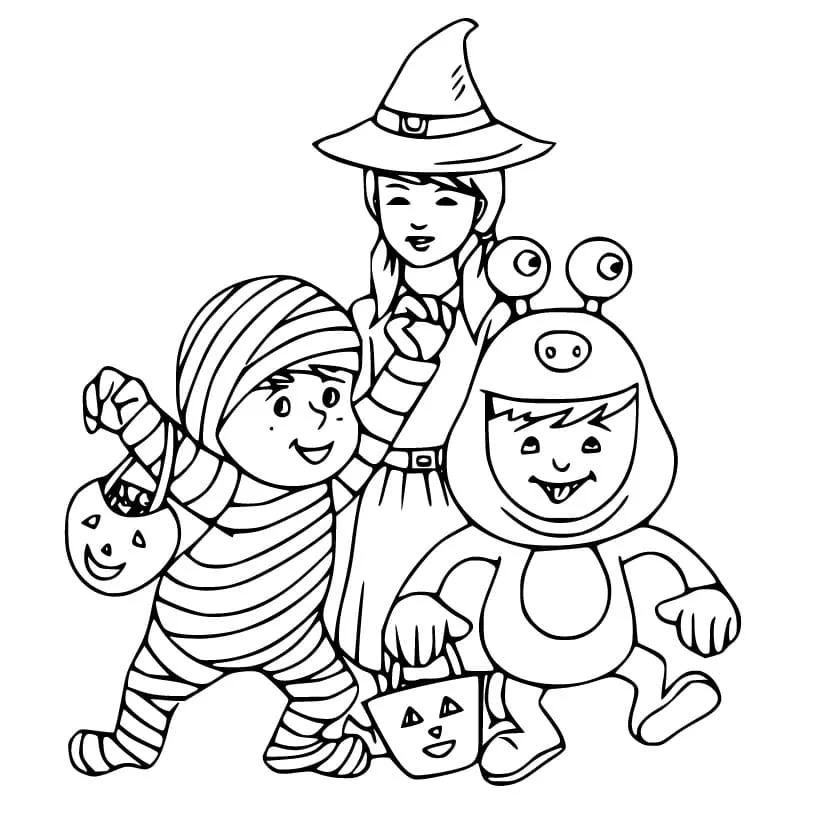 : Download Printable Crianças fofas de Halloween Coloring Page