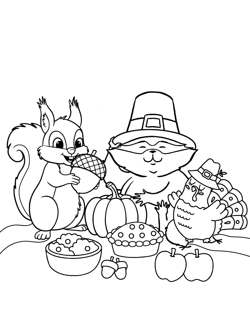 : Download Printable Animais fofos de ação de graças Coloring Page