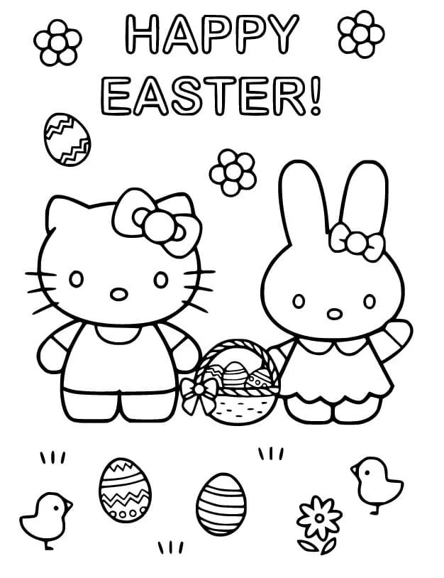 : Download Printable Olá Kitty na Páscoa Coloring Page