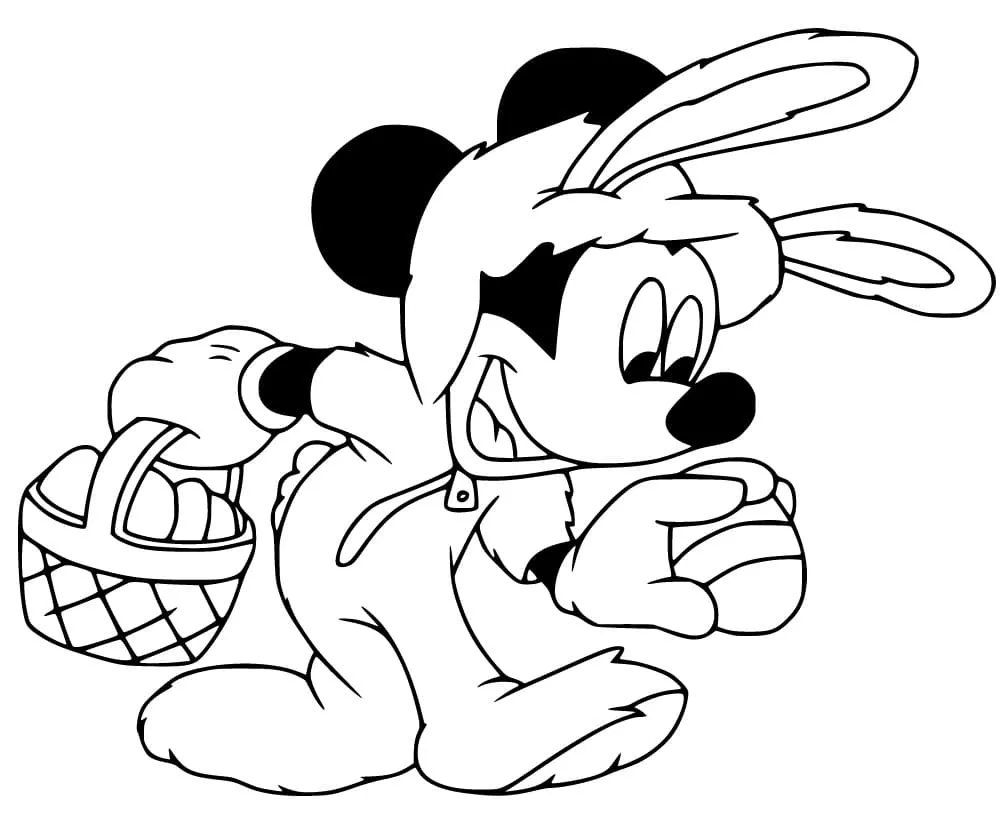 : Download Printable Mickey Mouse coletando ovos de Páscoa Coloring Page