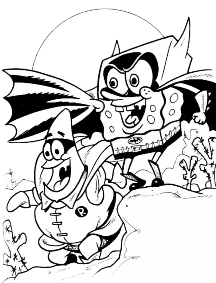 : Download Printable Bob Esponja com fantasia de Batman Coloring Page