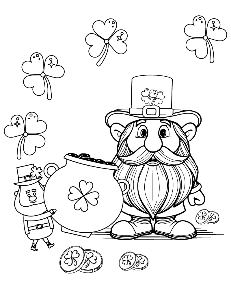 : Download Printable Leprechauns & Clovers no Dia de São Patrício Coloring Page