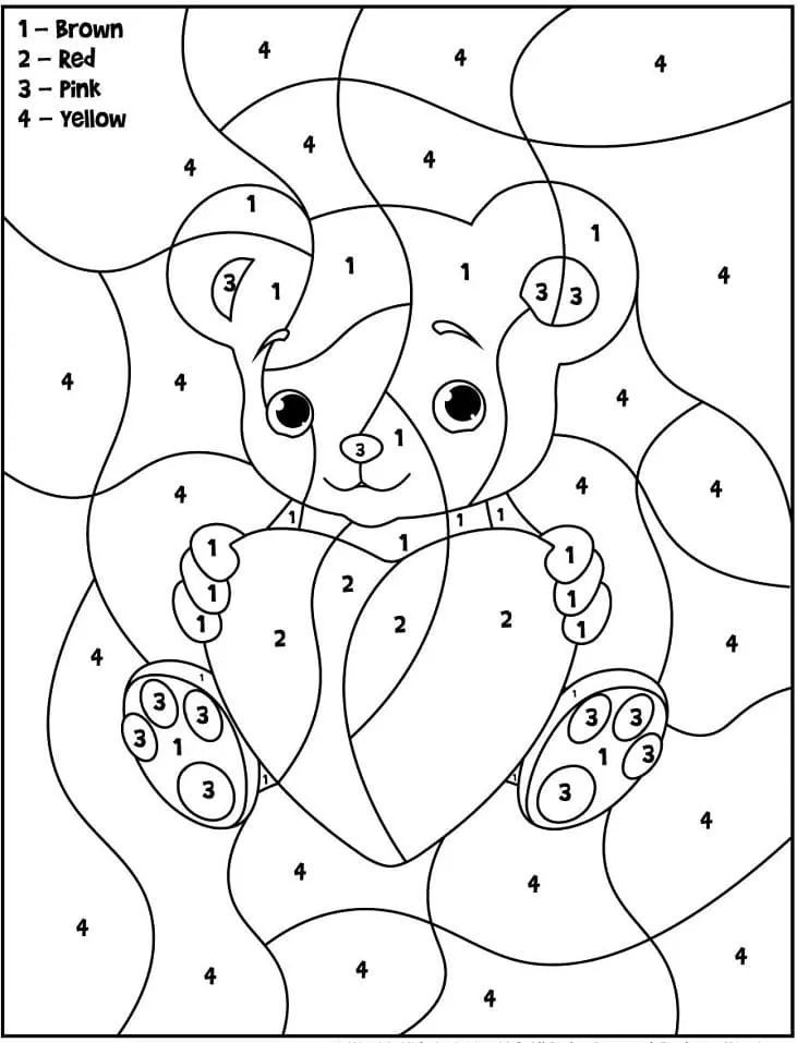 : Download Printable Urso bonito dos namorados cor por número Coloring Page