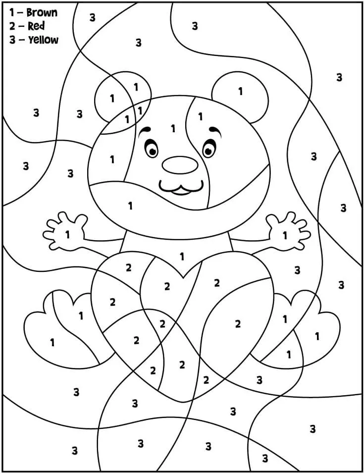 : Download Printable Urso dos Namorados Cor por Número Coloring Page
