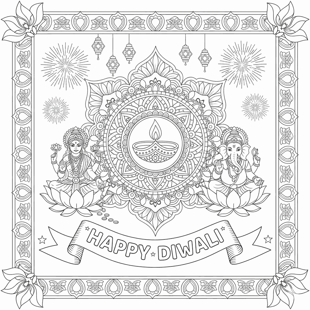 : Download Printable Diwali para Adultos Imprimível Coloring Page