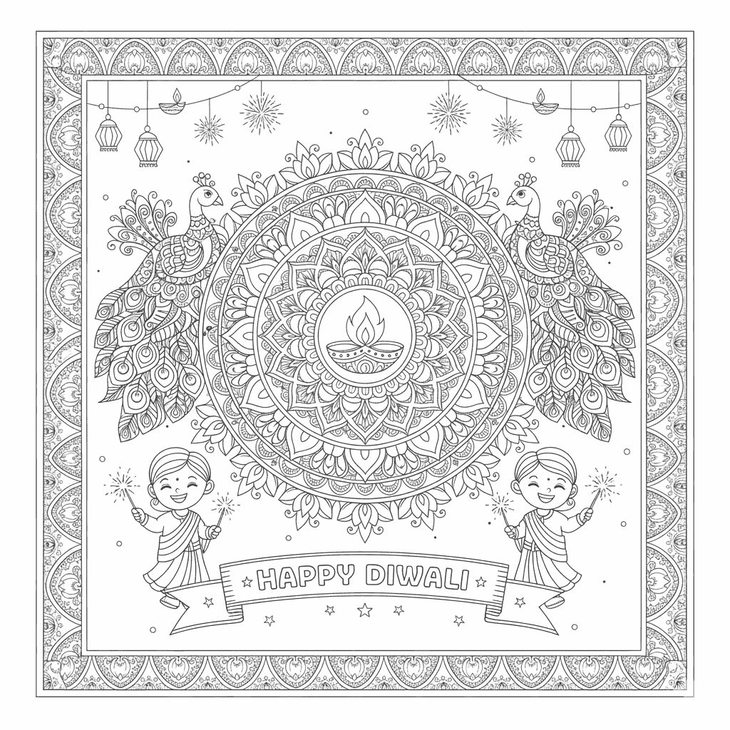: Download Printable Diwali complicado para impressão Coloring Page