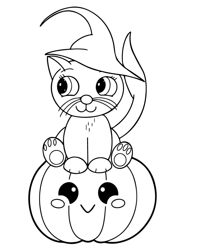 : Download Printable Gato e abóbora simples de Halloween Coloring Page