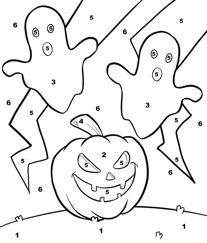 Click the Fantasmas de Halloween e cor de abóbora por número Páginas para colorir para visualizar a versão imprimível ou colorir online (compatível com iPad e tablets Android).