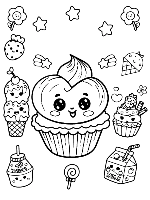: Download Printable Cupcakes Kawaii para o Dia dos Namorados Coloring Page