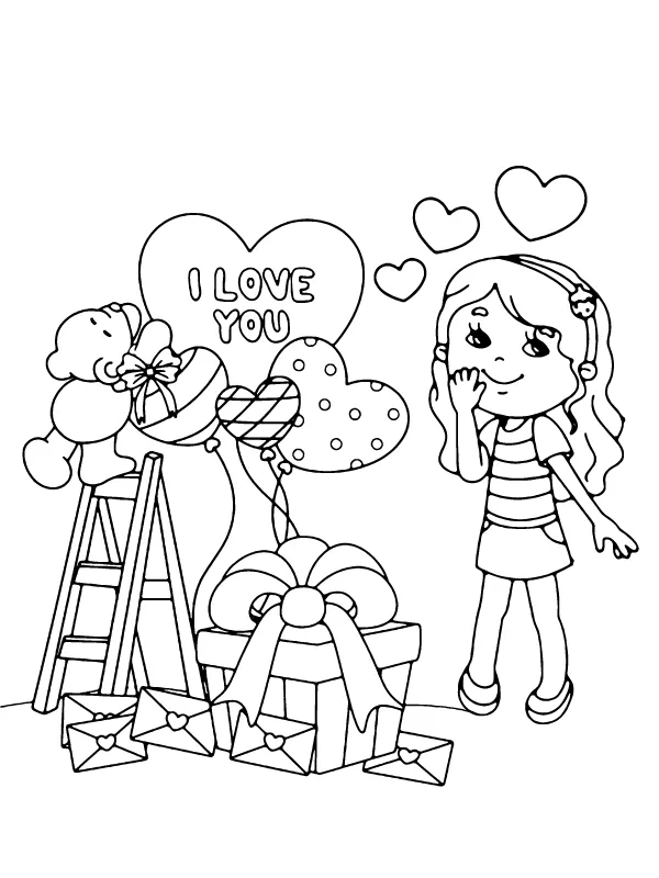 : Download Printable Linda garota Kawaii Valentines Coloring Page