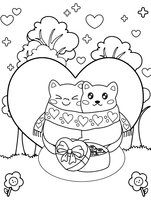 : Download Printable Casais Kawaii no Dia dos Namorados Coloring Page