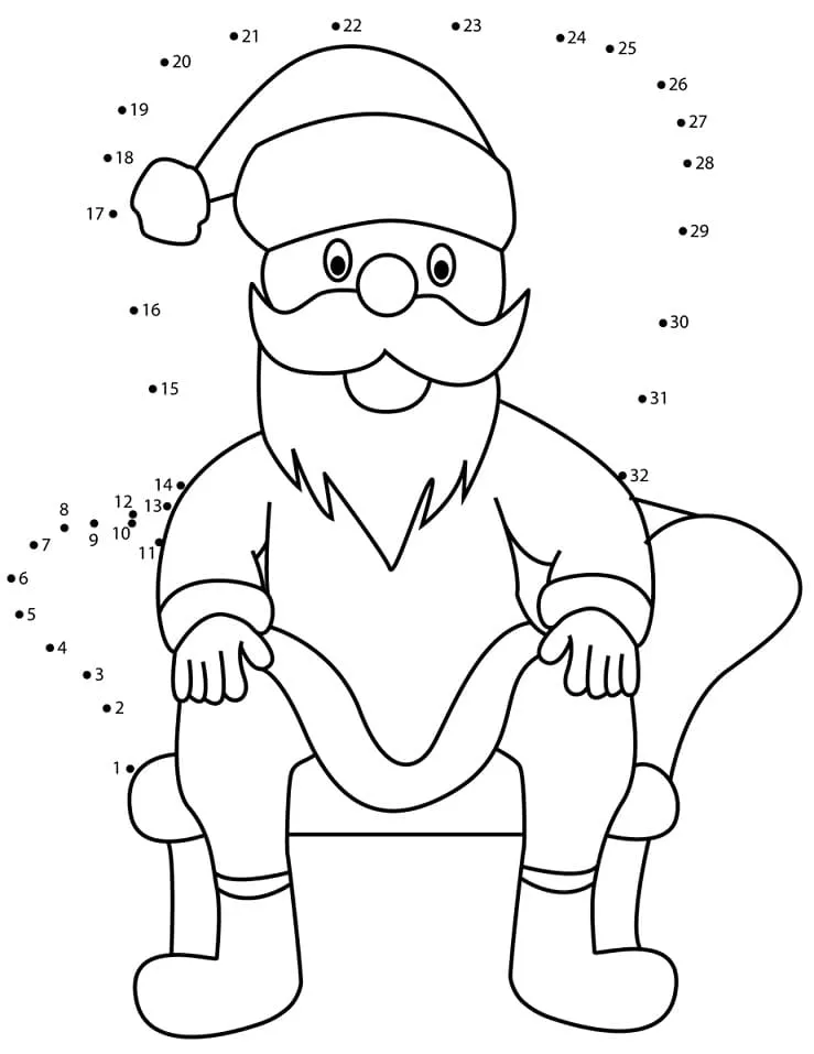 : Download Printable Papai Noel na cadeira Conecte os pontos Coloring Page