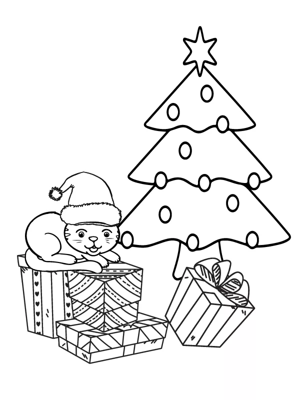 Presentes e um gato fofo de Natal
