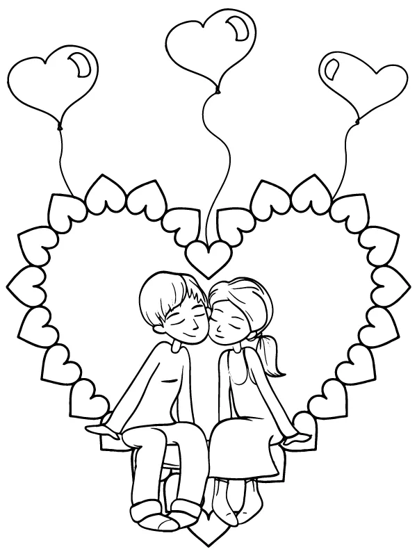 : Download Printable Casais bonitos em Valentines Coloring Page