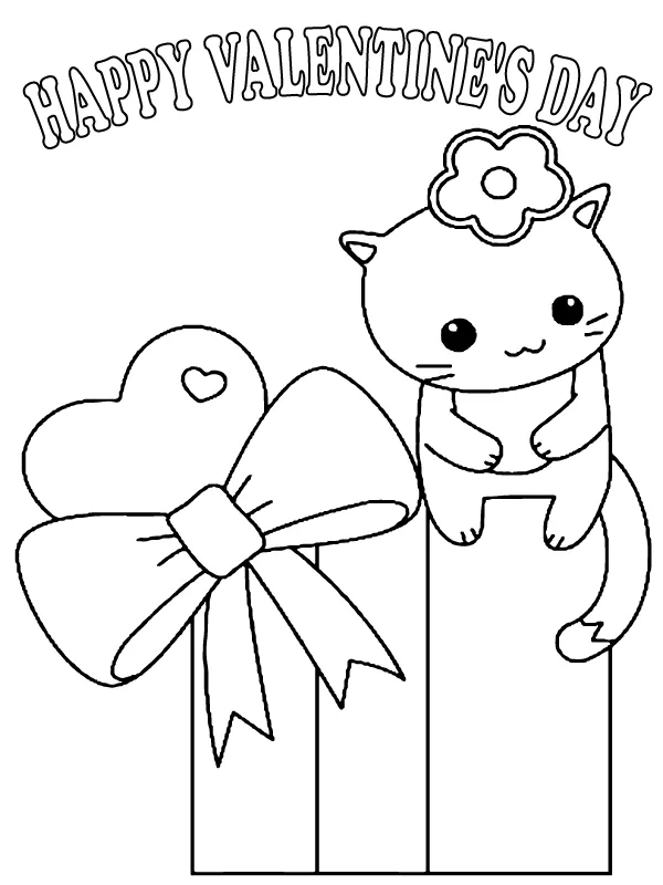 Click the Presente de Dia dos Namorados e Gato Páginas para colorir para visualizar a versão imprimível ou colorir online (compatível com iPad e tablets Android).