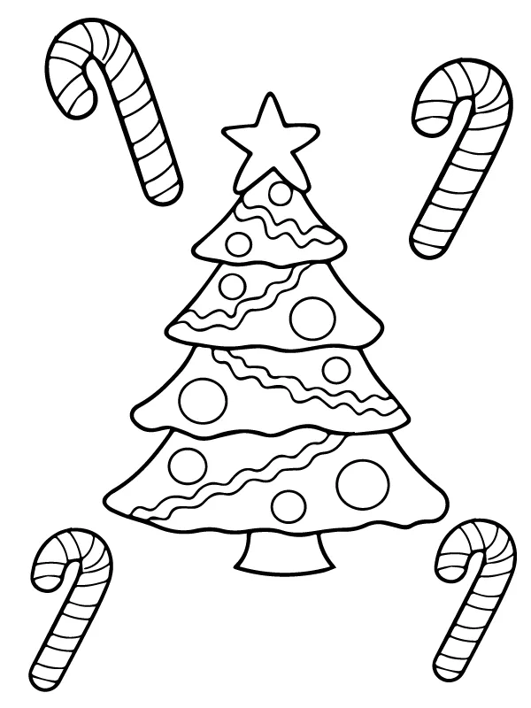 Coloring description : Download Printable Árvore de Natal grátis e bengala de doces Pré-escola Coloring Page