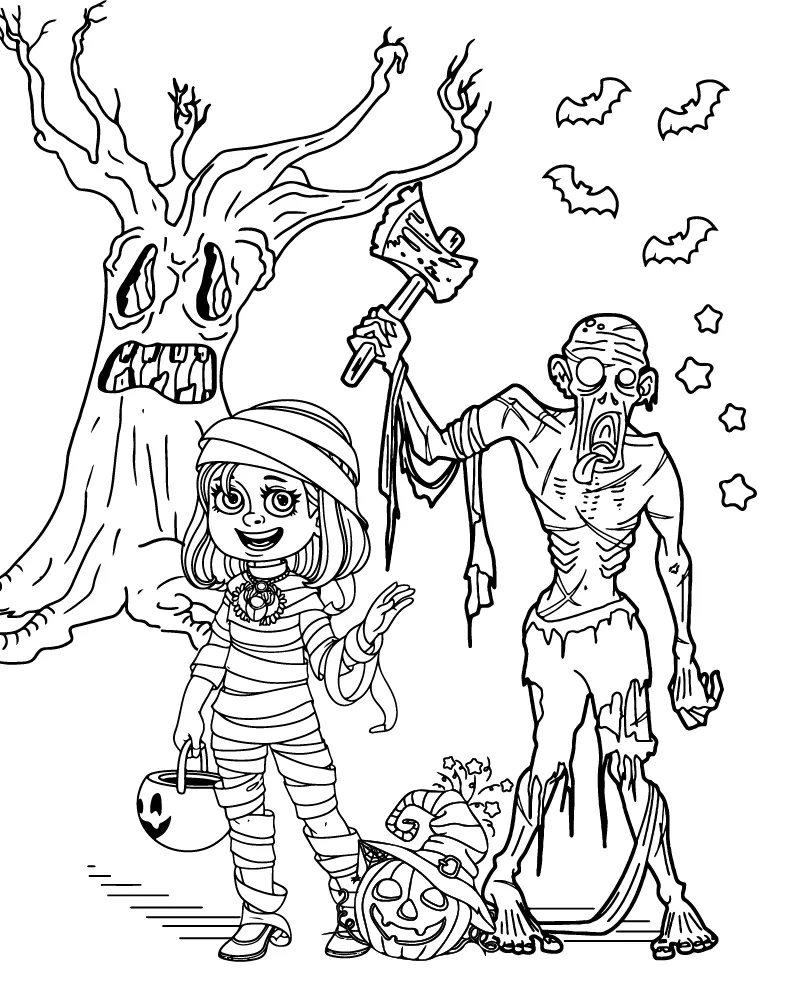 : Download Printable Dia das Bruxas assustador Coloring Page