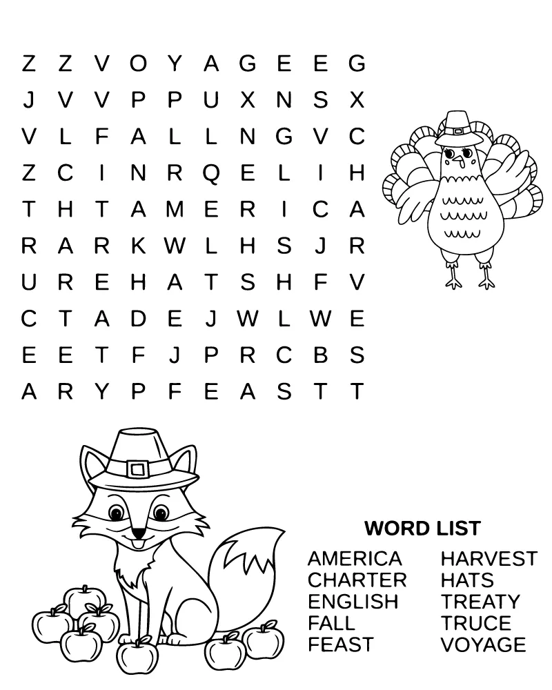 Caça-palavras gratuito para o Dia de Ação de Graças