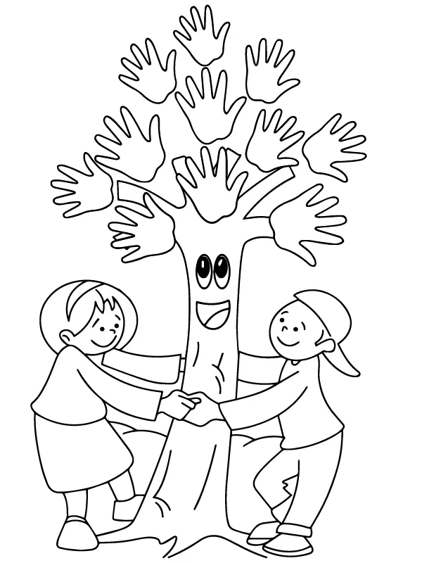 : Download Printable Crianças e árvore brincando Coloring Page