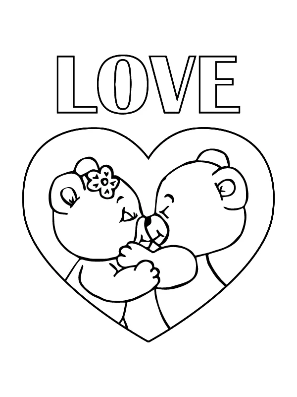 Coloring description : Download Printable Beijando ursinho de pelúcia no amor dos namorados Coloring Page