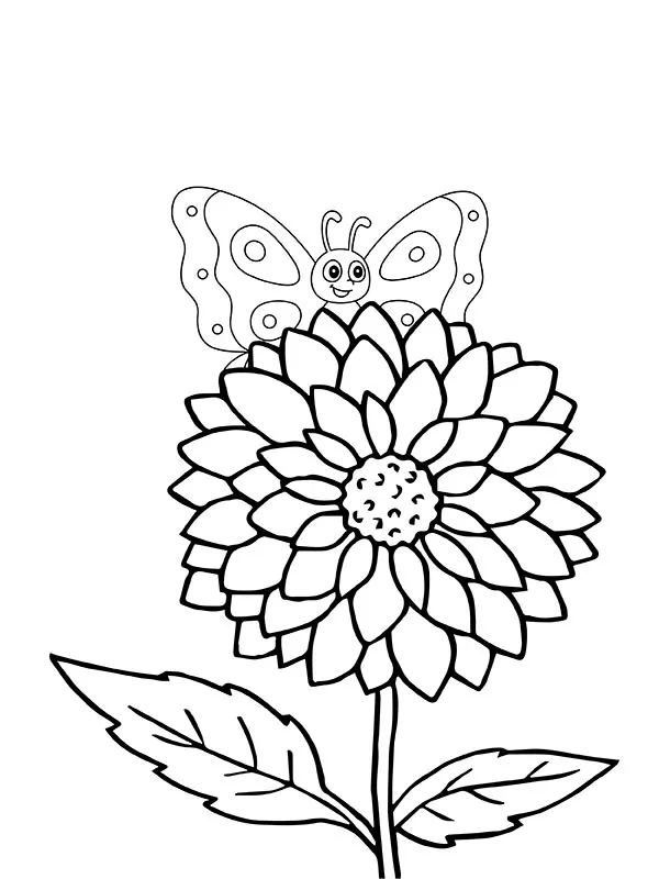 : Download Printable Borboleta atrás da flor da dália Coloring Page