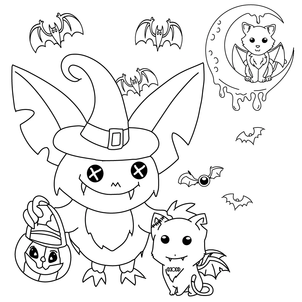 : Download Printable Criaturas Kawaii Assustadoras Coloring Page