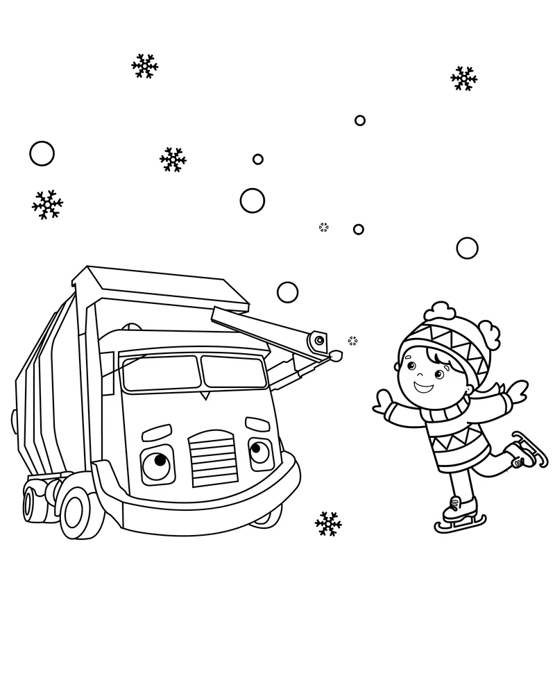 Folha de colorir de caminhão de lixo de desenho animado para crianças