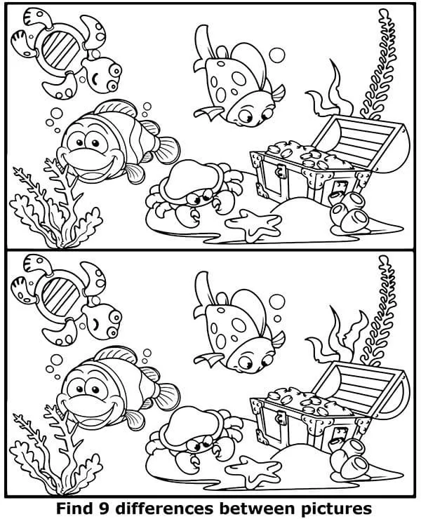 : Download Printable Encontre 9 diferenças Coloring Page