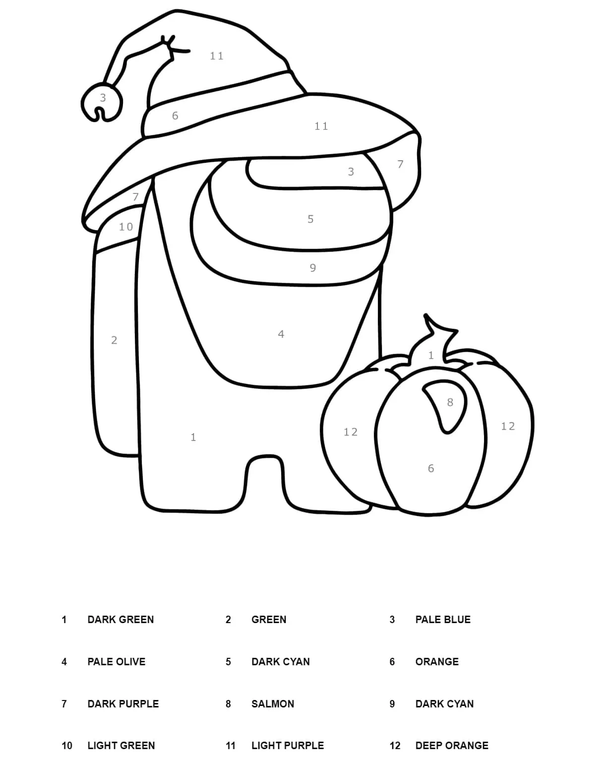 : Download Printable Halloween Among Us Colorir por número Coloring Page
