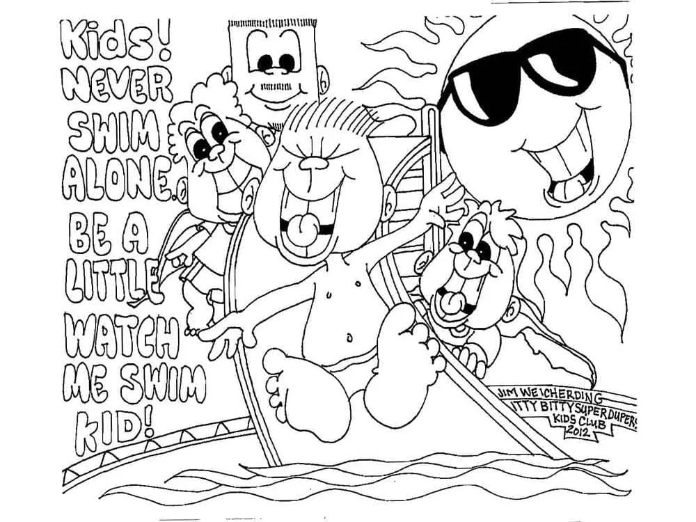 Click the As crianças nunca nadam sozinhas Páginas para colorir para visualizar a versão imprimível ou colorir online (compatível com iPad e tablets Android).