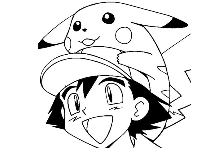 : Download Printable Feliz Ash e Pikachu Coloring Page