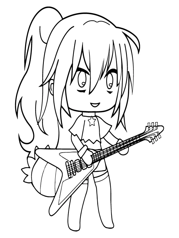 : Download Printable Gacha Nox Girl com guitarra elétrica Coloring Page