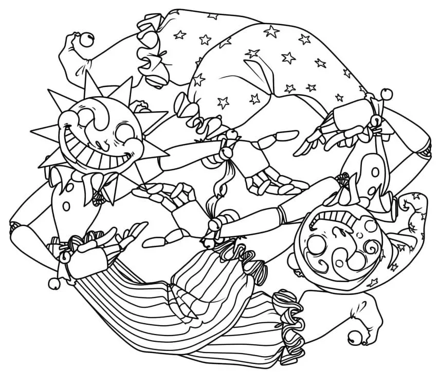 : Download Printable Gota de sol assustadora e Moondrop FNAF Coloring Page