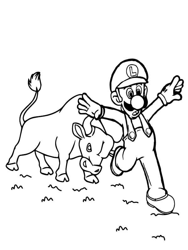 : Download Printable Luigi perseguido por um touro Coloring Page