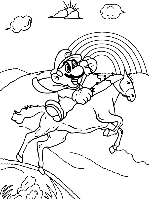 : Download Printable Luigi montando um cavalo Coloring Page