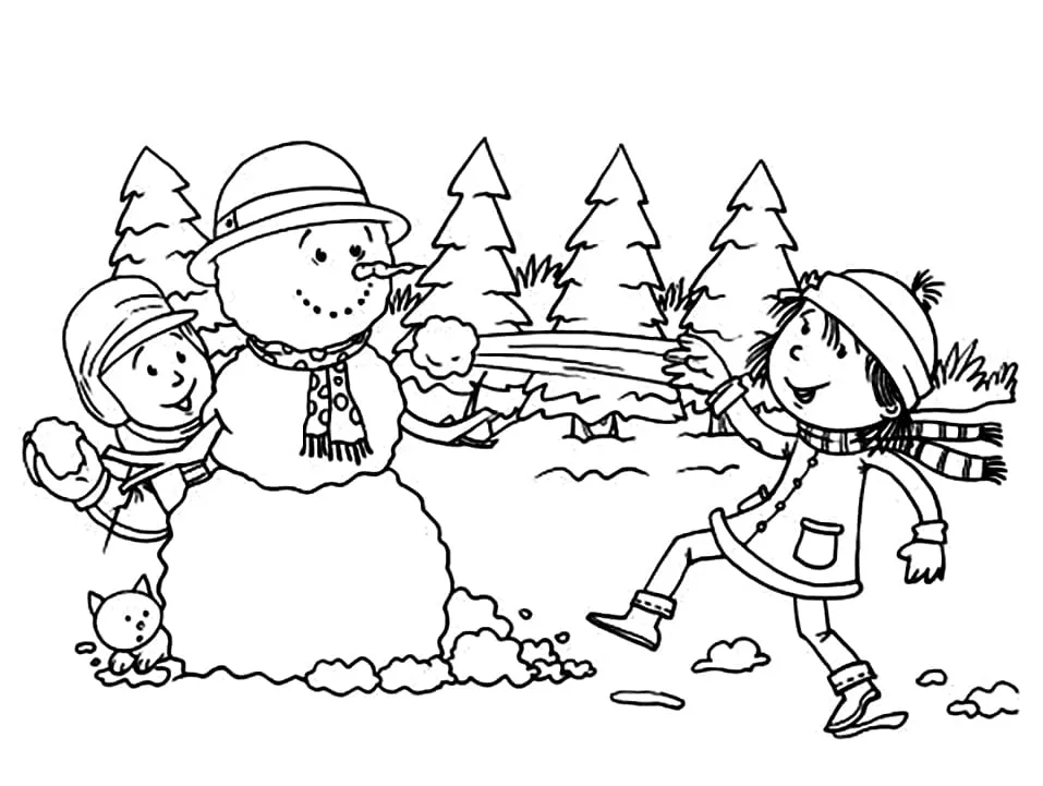 : Download Printable Luta engraçada de bolas de neve Coloring Page