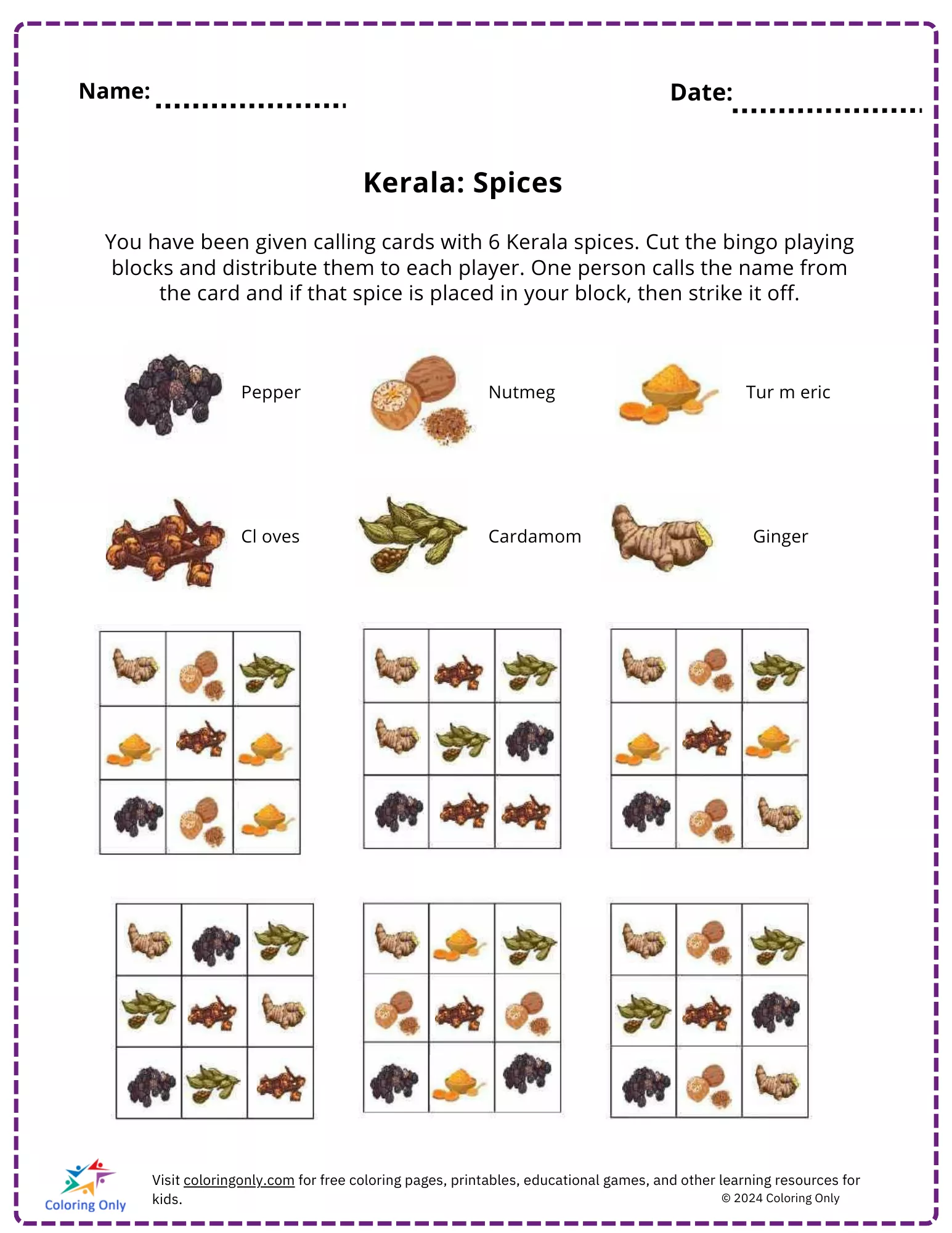 » Kerala: Spices free Printable Worksheet