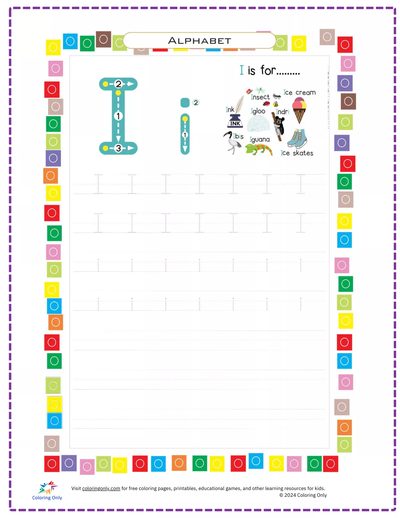 Coloring description : Download Printable Learn & Write the Letter I Free Printable Worksheet Coloring Page